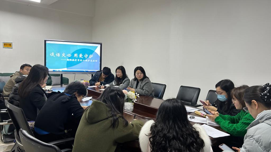 本站讯(国际教育学院 刘嘉妮)为不断提升学院班主任队伍业务能力,3月17日,国际教育学院举办“谈话交心 用爱守护”主题工作沙龙,院长王玮、刘嘉妮老师与学院班主任共同参与。