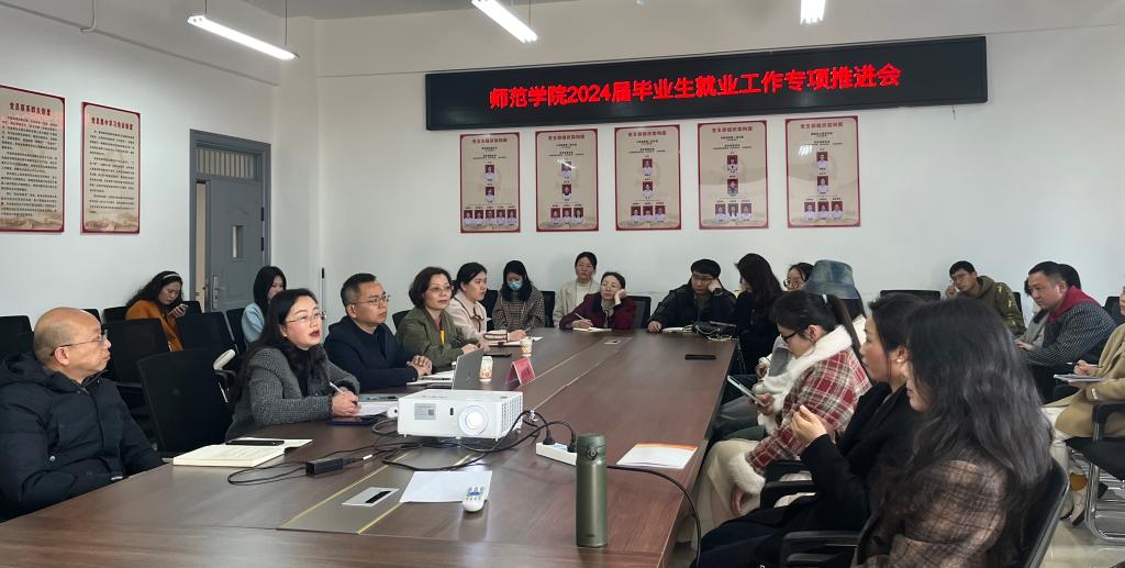 本站讯(师范学院 暨琨)3月19日,副校长张印华参加师范学院2024届毕业生就业工作专项推进会,会议在正心楼学院党员活动室举行。2024届学院全体毕业班辅导员班主任参会,院党总支书记邹晓英主持,招生就业处处长彭艳飞参加会议。