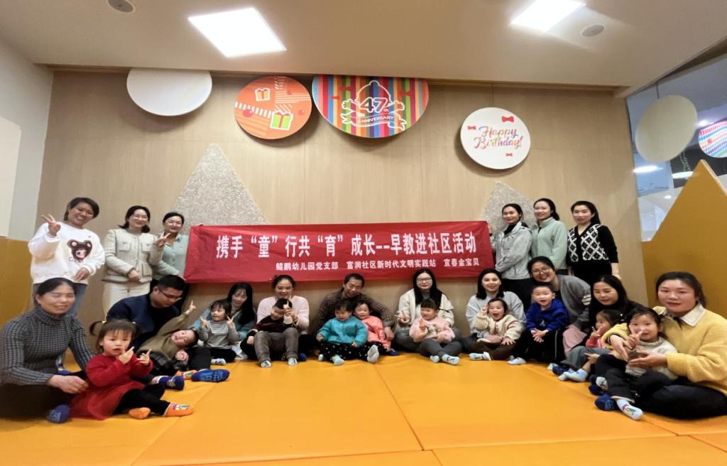 本站讯(鲲鹏幼儿园党支部 徐艳梅)为更好地发挥幼儿园在社区早期教育辐射指导作用,让社区0——3婴幼儿能够获得更多的早期教育服务,帮助社区家庭提升育儿理念,3月20日下午,幼儿园党支部联合富润社区开展“携手‘童’行 共‘育’成长”早教进社区活动,共有23位婴幼儿及家长参与活动。