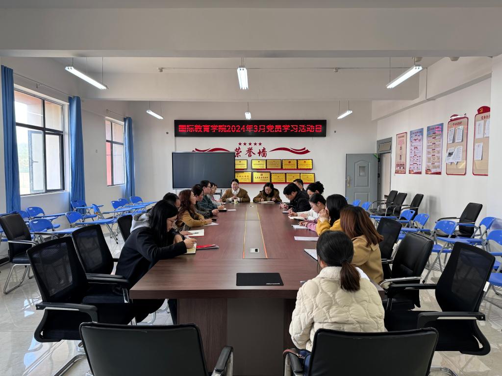 本站讯(国际教育学院党总支 刘洋倩)3月19日,国际教育学院党总支召开3月份主题党日活动,会议由党总支书记刘海云主持,全体党员参与会议。