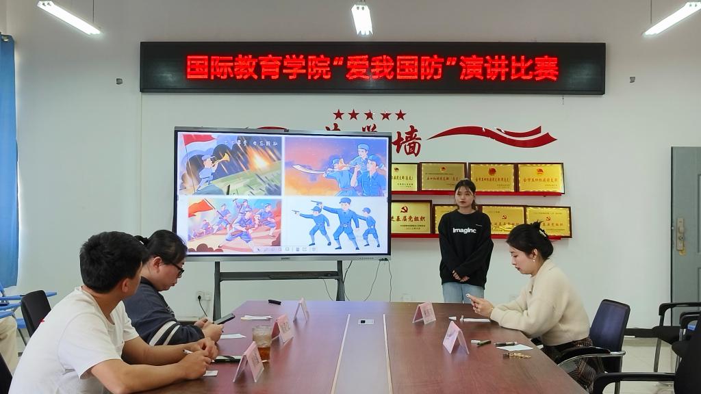 本站讯(国际教育学院 杨琨 学生记者 卢柳利)为深入学习贯彻党的二十大精神,深化全民国防教育,增强青年学生的国家安全意识和国防观念,国际教育学院于3月26日在博达楼B502开展“ 爱国奋进新时代 英你出彩强担当”主题演讲比赛。杨琨、张源晴、颜灵仪、彭娟、赖培鑫老师担任评委。