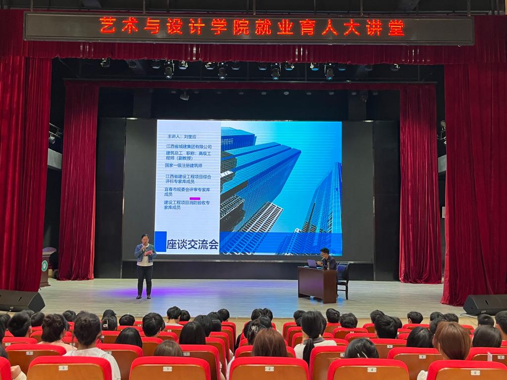 本站讯(艺术与设计学院 彭海艳)为提升学院学子就业竞争力,助力青年学生顺利从校园过渡到职场,3月29日下午,艺术与设计学院在博达楼小礼堂开展“找准方向 无缝衔接”为主题的就业育人大讲堂活动。本次讲座由江西省城建集团有限公司高级工程师、建筑总工刘奎应主讲。