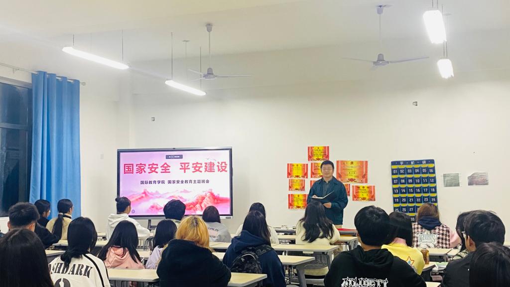本站讯(国际教育学院 赖培鑫 学生记者 周熙睿)为贯彻中央和省委政府关于推进平安建设和法治建设的重要决策部署,宣传平安中国、平安江西、平安宜职的大安全理念,培养学生法制观念,4月6日晚,国际教育学院在各班召开国家安全教育主题班会,会议由各班班主任主持,学院全体学生参与。