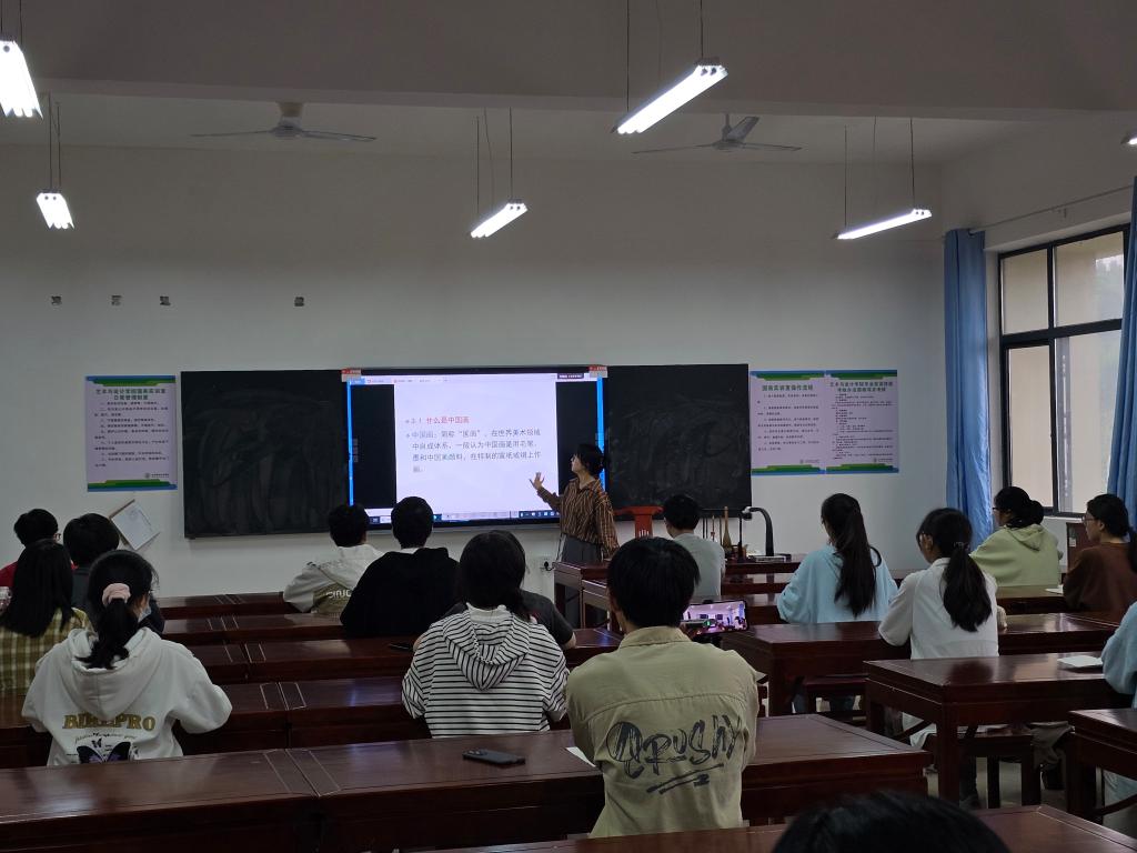 公开课上,闵思琴围绕国画基础知识带同学们认识、了解中国画。教学内容衔接自然,课堂丰富有趣,教学效果显著,课堂反馈良好。课后,教师们进行了集体评课,共同讨论研究,为授课老师提出宝贵意见。全体听课教师在讨论中借鉴学习、取长补短。