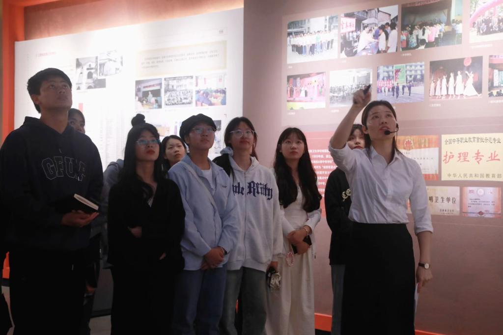 理论培训结束后,一行人移步校史展览馆。孙平带领候选人经过每个展板,现场示范讲解内容、行进路线、手势仪态等,帮助候选人快速掌握讲解要领。学员们仔细聆听、认真学习,受益匪浅。