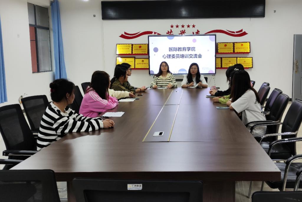 本站讯(国际教育学院 彭娟 学生记者 江静云) 为扎实推进学院心理健康教育工作,帮助心理委员进一步了解心理健康教育工作的基本体系,做好班级心理信息的收集和反馈,4月21日,国际教育学院在博达楼B502开展心理委员培训会。会议由学工负责人刘嘉妮、辅导员彭娟老师主持,各班心理委员参会。