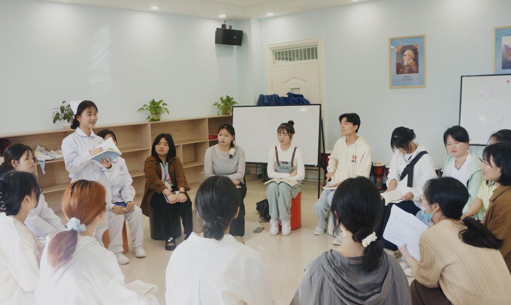 读书会伊始,两位老师对读书会的主题和活动流程进行简单介绍,并对参与活动、坚持完成21天阅读打卡的同学们表示肯定,鼓励大家爱读书、会读书、读好书。随后,同学们依次分享自己的阅读书目,通过赏名著、读经典、在阅读中与大师对话等形式,把每本书的故事和哲理娓娓道来。活动现场,同学们认真倾听,踊跃发言,洋溢着热情且充满活力的读书氛围。