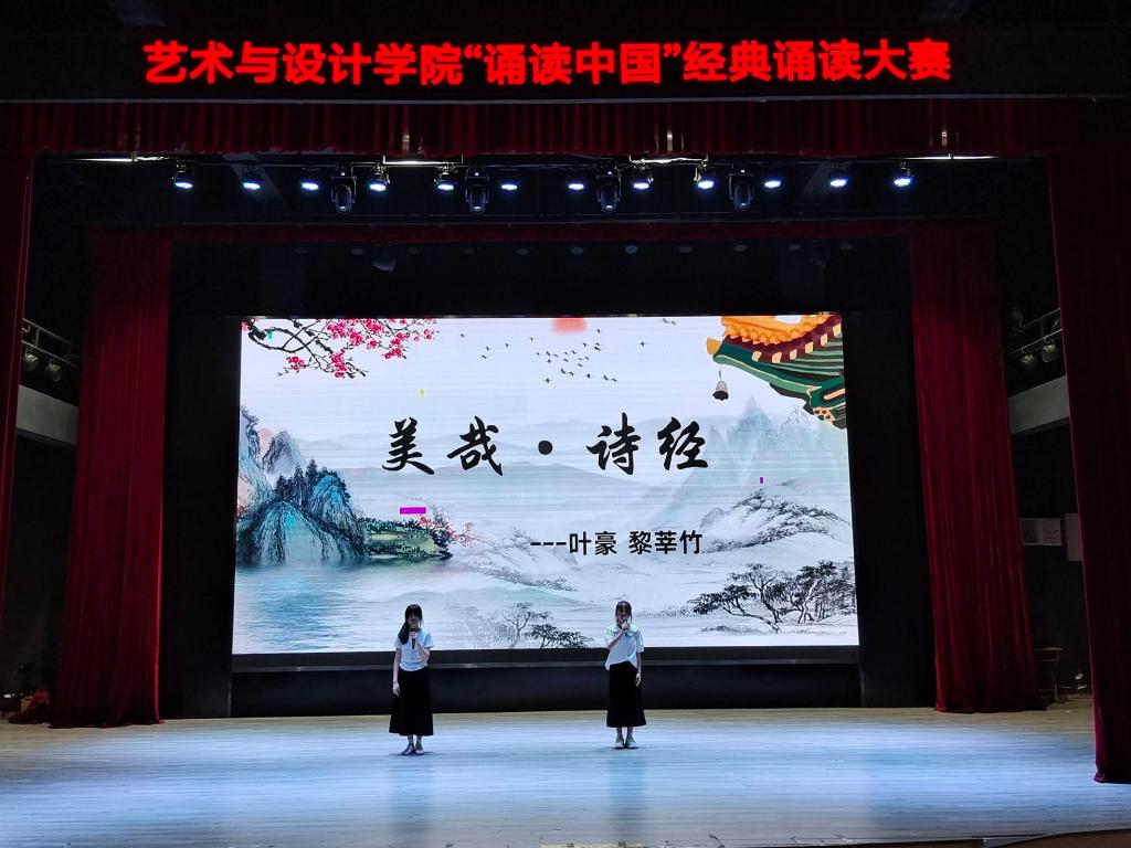 比赛现场气氛热烈,参赛选手们以饱满的精神状态和真挚的感情投入诵读,声音时而铿锵有力,《少年中国说》《我骄傲,我是中国人》等经典诗文,慷慨激昂、气势如虹,学生们在深情的诵读中表达出对祖国的赤诚之心;《《不朽》将大家带回硝烟纷飞的革命年代,学生们在热血沸腾的通读中,诉说着革命先烈的丰功伟绩,赓续着代代相传的红色基因。经过一个多小时的激烈角逐,艺术教育22303、22304班彭荧龙和王媛媛同学的合诵作品《我们的青春》荣获一等奖。