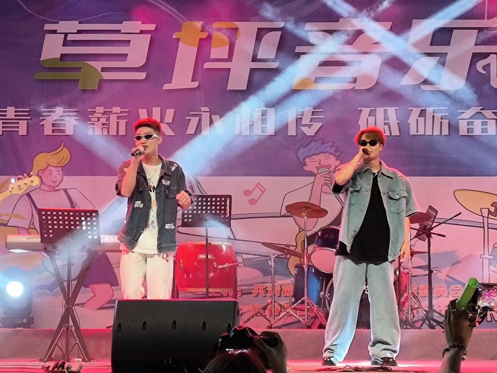 音乐一响,《月牙湾》《恋爱ing》《小城夏天》《别叫我达芬奇》演唱者闪亮登场!校团委副书记杨雨献唱《下一站天后》《说爱你》,歌声细腻婉转,轻快的旋律与歌词,鼓励大家向梦想出发,即使不能到达,也要站在群星之中!演出最后一曲《日不落》,将全场氛围推上了最高点。荧光闪烁交织着的肆意青春,让音乐节在欢乐的氛围中圆满落幕。