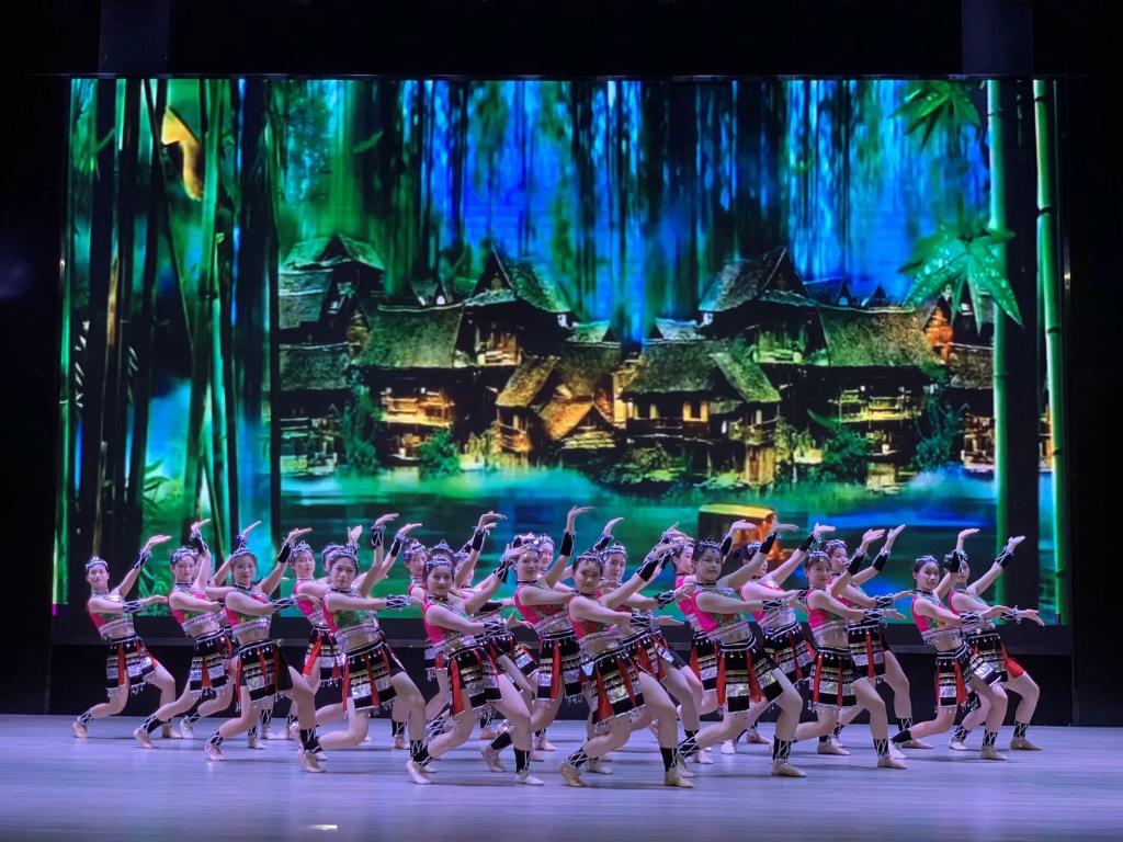 晚会以壮族群舞《走在山水间》开场,独特的舞蹈形式结合少数民族的风情唤醒观众对艺术的热爱。傣族舞《花腰傣》舞姿优美、婀娜多姿,富有民族特色;维族舞蹈《花儿为什么这样红》通过旋转这一新疆民间舞蹈的典型技巧,生动展现了爱情的美好与复杂。爵士舞《粉墨时代》既有力量又有美感,充满活力和感染力;藏族舞《洗衣歌》以优美动听的音乐,活泼轻快的舞蹈,描写了西藏老百姓争着为解放军洗衣的生活场景。晚会在活力四射的啦啦操《芭比》中落幕,整台晚会极具艺术表现力和感染力,全场观众对演员们高超的演技赞不绝口,现场掌声如潮。