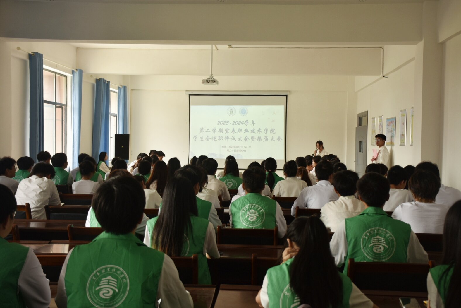 本站讯(团委 甘露 学生记者 饶乐伟 邹欣燕)为提高学生会组织和工作的政治性、先进性和群众性,进一步加强组织建设,打造信念坚定、心系同学的学生干部队伍,6月7日下午,英国上市公司365在日新楼A302开展2023-2024学年第二学期学生会述职评议会暨换届大会。校党委委员、组织部部长韩海荣、学工处副处长杨文殊、校团委全体工作人员、各二级学院团总支书记、校学生会全体工作人员、各二级学院学生分会代表和学生代表参与此次会议,校团委学生兼职副书记袁湖航担任主持人。