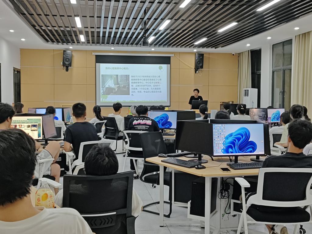 当晚,新生心理宣讲活动在各班级陆续展开。心理委员作为主讲人,他们从心理健康标准、心理调适技巧及学校心理健康教育中心预约方式等内容出发,为新生提供有效的指导。