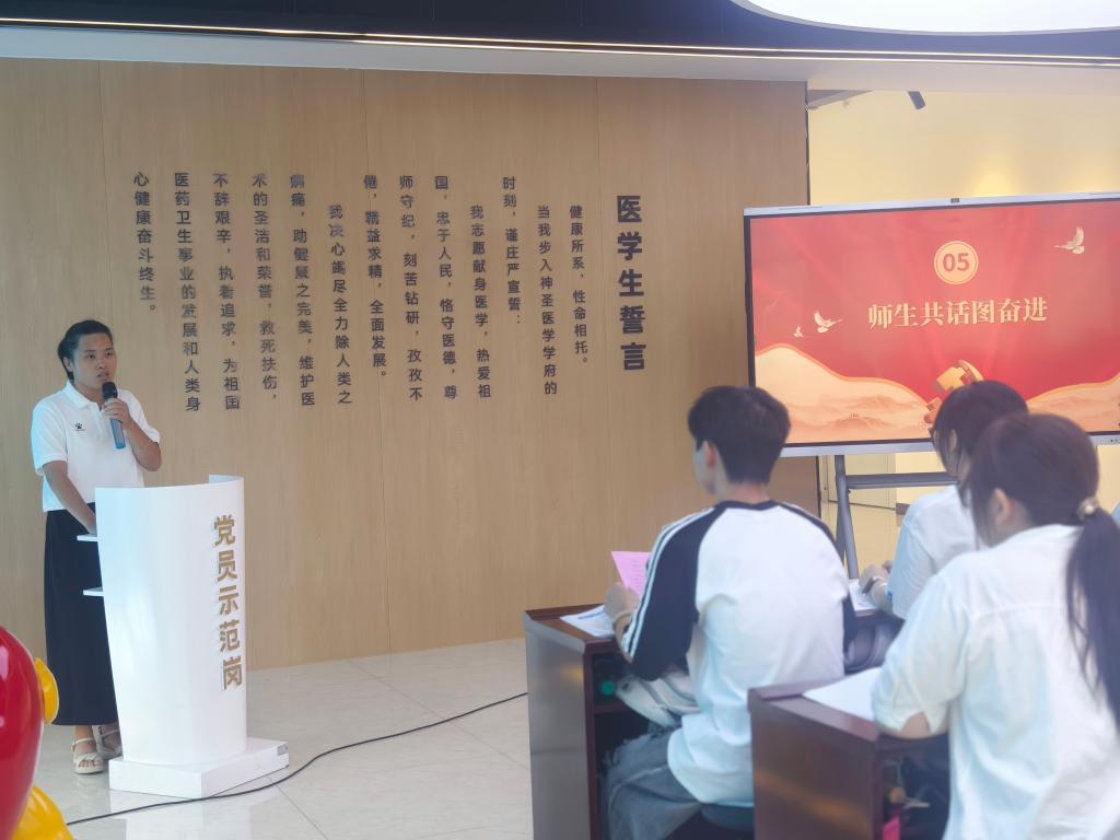 本站讯(医学基础部 尹史帝)为落实立德树人根本要求,践行“三全育人”教育理念,9月19日,医学基础部党支部将主题党日活动与医学生新生班级“开学第一课”结合,在生命与健康科学馆内开展了一场意义非凡的“感恩、立志、奋进--医学生开学第一课”主题党日活动。兄弟党支部同志到场观摩。