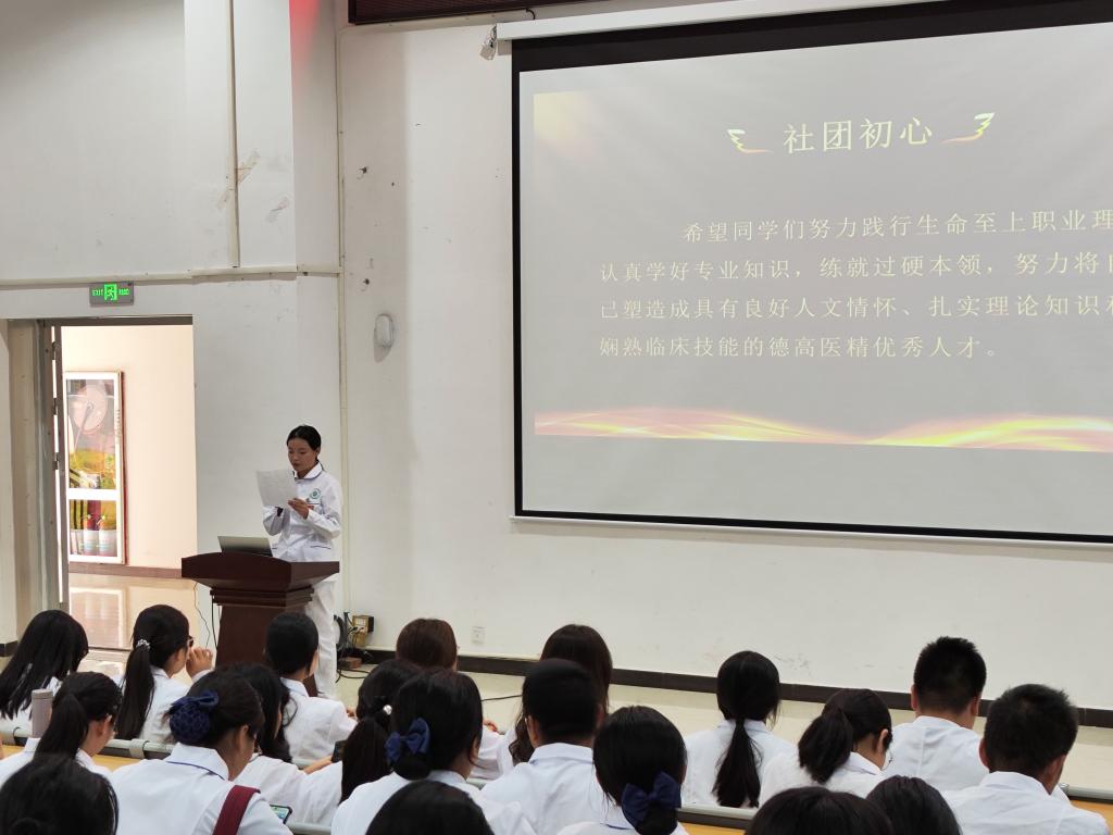 社长丁偲同学阐述了医者初心人文社的基本情况,对社团监察部、组织部、宣传部及财务部四个职能部门的工作任务、运行机制进行说明。她号召社团成员以主人翁精神积极投入到社团工作,锻炼自已,提升自我,见证社团的发展。目前,社团共有190名成员,均为医药卫生类专业学生。