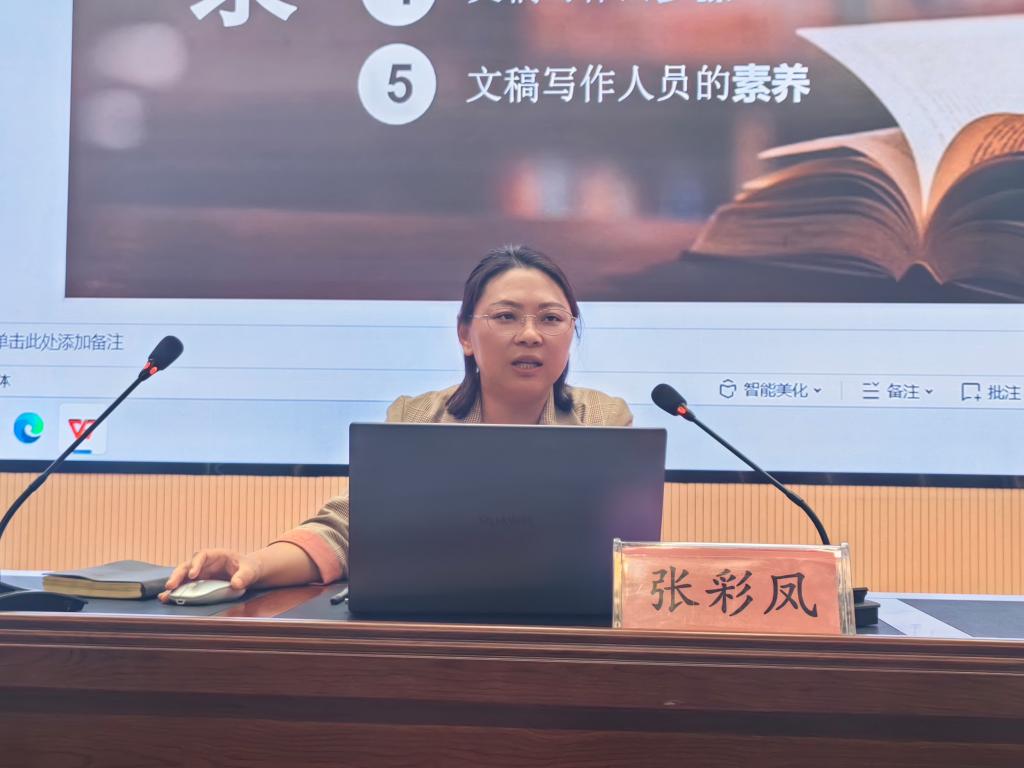 本次培训以《公文写作的常见类型和工作思路》为主题,由副校长张彩凤进行授课。授课主要围绕公文写作的基本要求、常见类型、写作步骤、人员素养等维度进行阐述,结合高校常用的工作通知、工作方案、工作报告、新闻宣传、领导讲话、会议主持等文稿撰写,让参训对象对常见公文的基本框架、文体格式等有了较为清晰的认识。张彩凤指出,辅导员作为高校思想政治工作的中坚力量,始终工作在学生管理的第一线。希望每一名辅导员加强知识储备、提升政治素养、调动工作热情,在文稿写作中尽早实现从“不敢写”到“不怕写”的转变,立足岗位工作职责,积极服务学校发展。