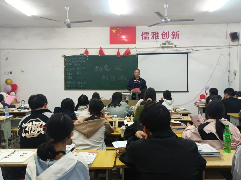 现场,各班班主任解读《中华人民共和国家庭教育促进法》及阐述家风和家规的内涵,分享名人良好的家风家训故事;同学们畅谈自己家的家风家训,以及家风家训对自己的影响等。