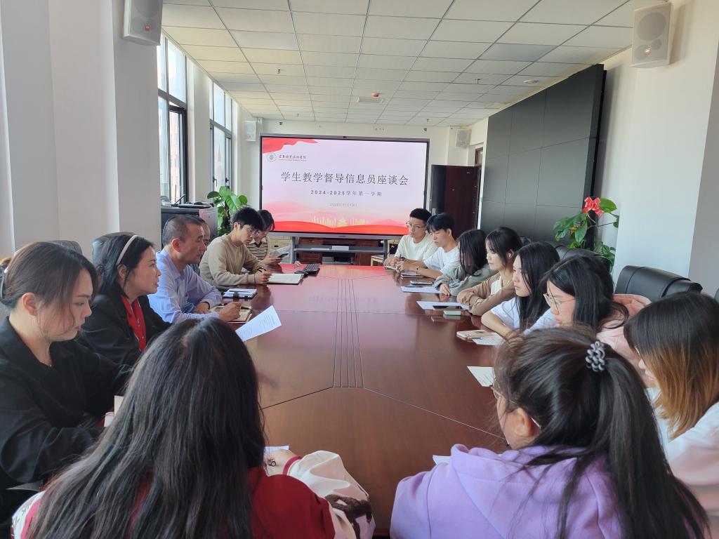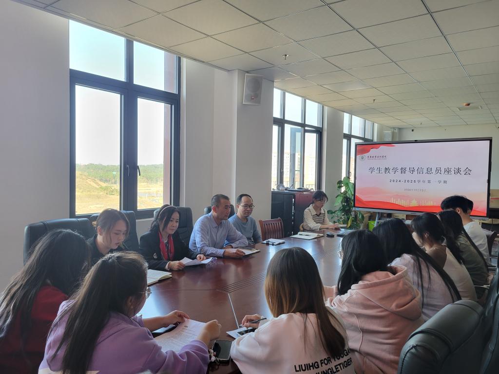 本站讯(机关第五党支部 舒丽芳 教学督导处 易鑫)为推进党建引领与教学质量管理深度融合,完善教学质量保障体系,健全教学督导信息反馈制度,充分发挥学生在教学管理和教学检查的能动作用,11月13日,机关第五党支部在天工楼C806召开2024-2025学年第一学期学生教学督导信息员座谈会。机关第五党支部部分教师党员、各二级学院学生教学督导信息员代表参加座谈会。