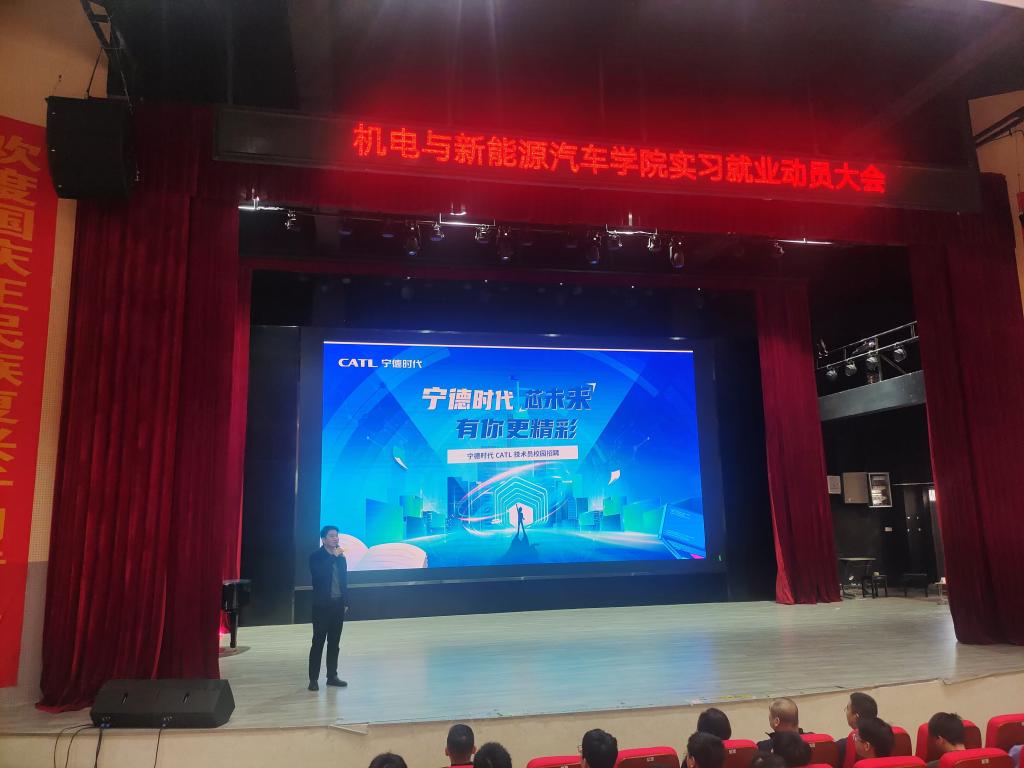 本站讯(机电与新能源汽车学院 彭卫发)11月13日上午,机电与新能源汽车学院在博达楼演艺厅举行实习就业动员会。动员会由院党总支副书记周勤主持。