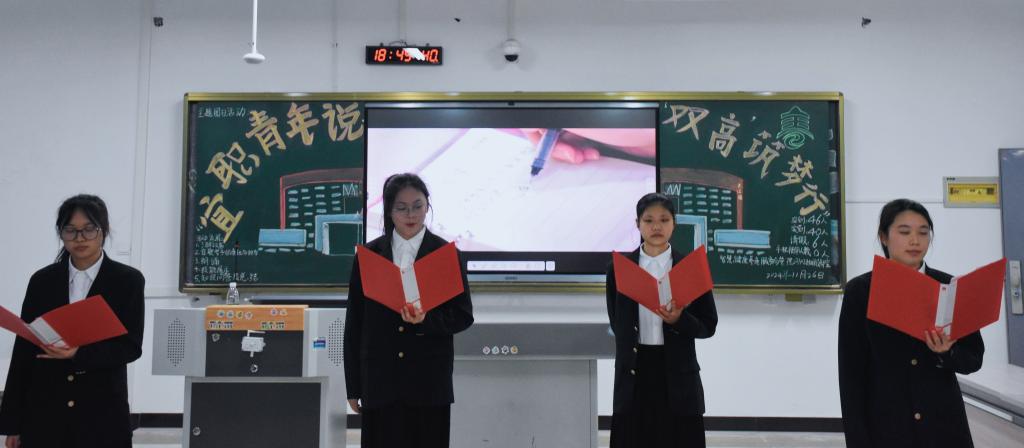 本站讯(团委 曹招 学生记者 刘佳敏)青春使命显担当,携手共进创“双高”。为激励广大青年学子立足新时代,勇担新使命,积极投身“双高”校园建设,用实际行动书写青春的华章,11月26日晚,校团委在全校范围内组织开展“宜职青年说·‘双高’筑梦行”主题团日活动及绘制手抄报活动。