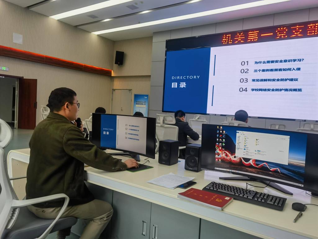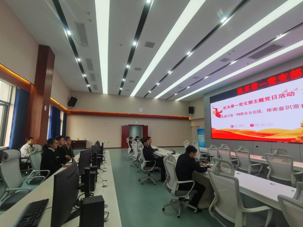 本站讯(机关第一党支部 黎月明)12月4日,机关第一党支部在天工楼五楼IOC报告厅开展“党建引领网络安全在线、保密意识常在”主题党日观摩活动,参加活动的有机关第一党支部全体党员以及各基层党组织支委代表。活动由支部书记高华兵主持。