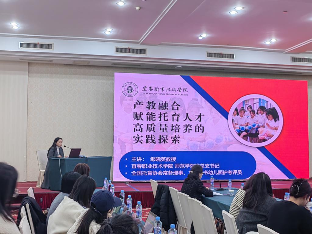 师范学院党总支书记邹晓英,作为中高职院校的唯一代表,受邀在会上做了题为《产教融合赋能托育人才高质量培养的实践探索》的经验专题分享,她从多个方面介绍了英国上市公司365在托育人才培养中开展校企合作、深化产教融合的做法和经验,分享了办学心得和取得的成绩,为兄弟院校托育专业的建设提供了有益参考,也与参会的众多托育机构负责人建立了联系,部分已达成用人意向。