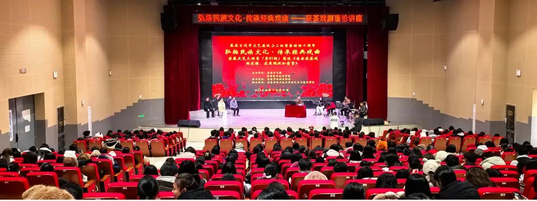 此前由宜春市文联、学校主办,宜春市戏剧家协会承办的“戏曲进校园”活动之“宜春文艺大讲堂”(第41期)——采茶戏剧理论讲座,于12月10日上午在博达楼”艺飞扬“剧场举行。国家一级演员、宜春采茶戏非物质文化遗产代表性传承人毛建舟主讲,宜春市采茶剧团乐队和演员配合现场演示。下午,春晓采茶戏剧团在出彩大会堂演出大型高安采茶戏《五子图》,1000余师生到场观赏。专业戏曲演员们以扎实的功底、精彩的表演,为师生们带来了一场视听享受,让同学们近距离领略到戏曲艺术的独特魅力。