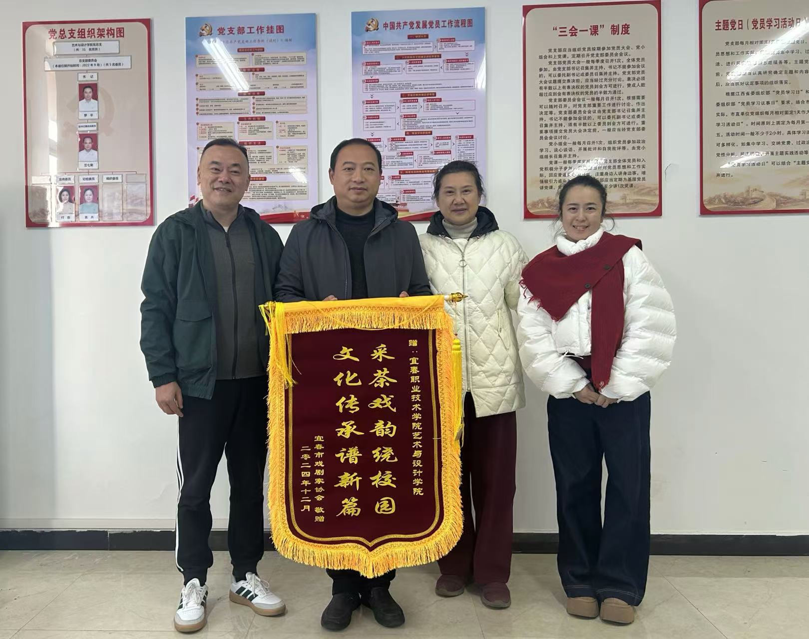 本站讯(艺术与设计学院 吴卿妍)12 月 26 日,宜春市戏剧家协会为艺术与设计学院送来一面“采茶戏韵绕校园,文化传承谱新篇”的锦旗,以此表达对学校在“戏曲进校园” 活动中积极作为的高度认可与诚挚感谢。