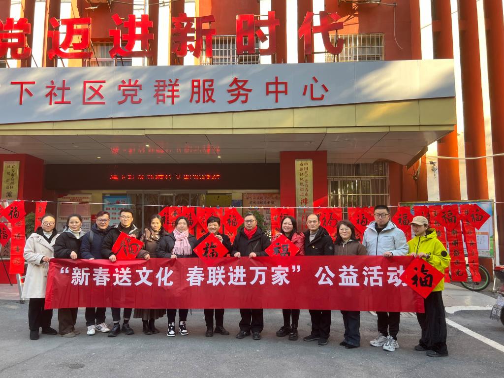 本站讯(艺术与设计学院 吴卿妍)为深入学习习近平文化思想,积极响应中华全国总工会宣传教育部、中国书法家协会2025年元旦春节期间举办的“送万福进万家”书法公益活动号召,1月10日上午,艺术与设计学院党总支、机关第六党支部、创新创业学院党支部到滩下社区联合开展一场别开生面的书法公益活动,用中华优秀传统文化充盈居民精神文化生活。