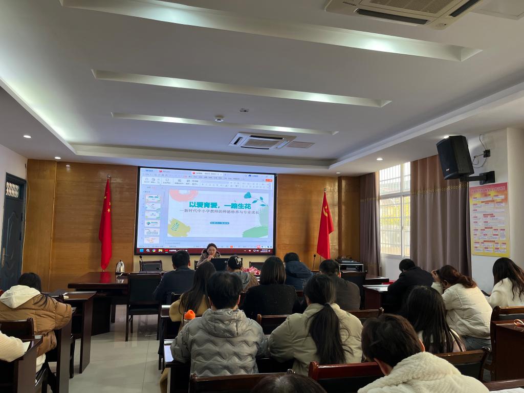 本站讯(附属小学 易云艳)为深入学习贯彻全国教育大会精神,大力弘扬教育家精神,进一步加强师德师风建设,提升教师职业道德素养,1月13日,校党委委员、副校长张彩凤到附属小学为教师们作师德师风专题讲座。
