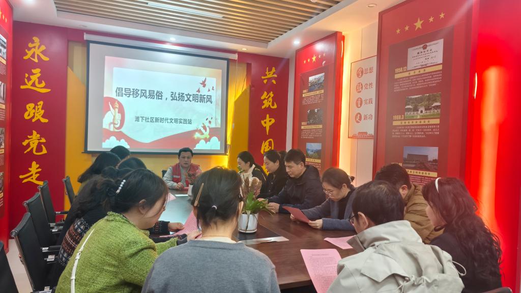 支部党员参观社区党建服务中心并围绕“推进移风易俗,培育文明新风”主题与社区座谈。支部书记周艳表示,培育文明新风需要党员带头示范,争做移风易俗的倡导者、勤俭节约的示范者、文明新风的传播者,以实际行动引领社会风尚。