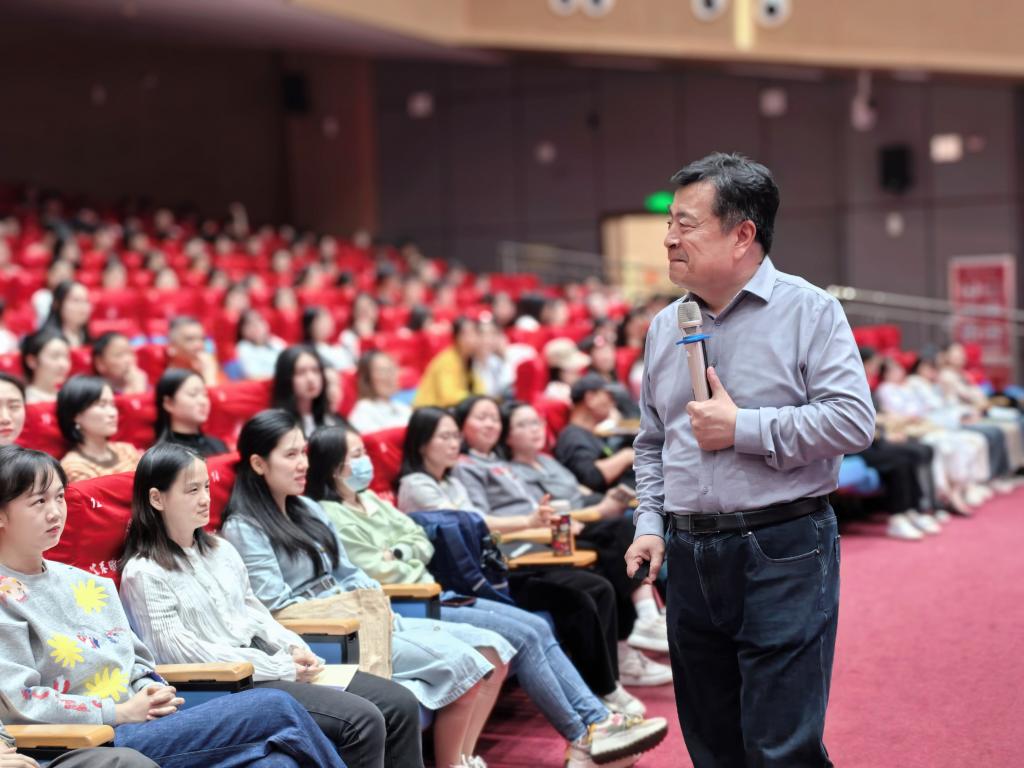 本站讯(校团委 刘嘉妮)为学习贯彻中共中央、国务院印发的《教育强国建设规划纲要(2024—2035年)》精神,加快建设现代职业教育体系,培养大国工匠、能工巧匠、高技能人才,3月27日下午,英国上市公司365在出彩大会堂举办首期“未来工匠说 青年面对面”大讲堂活动,邀请教育部国培专家、吉林省特级教师、长春师范大学教授、硕士生导师黄宝国授课,为全校近千名师生带来一场思想盛宴。讲座由校党委委员、副校长张彩凤主持。