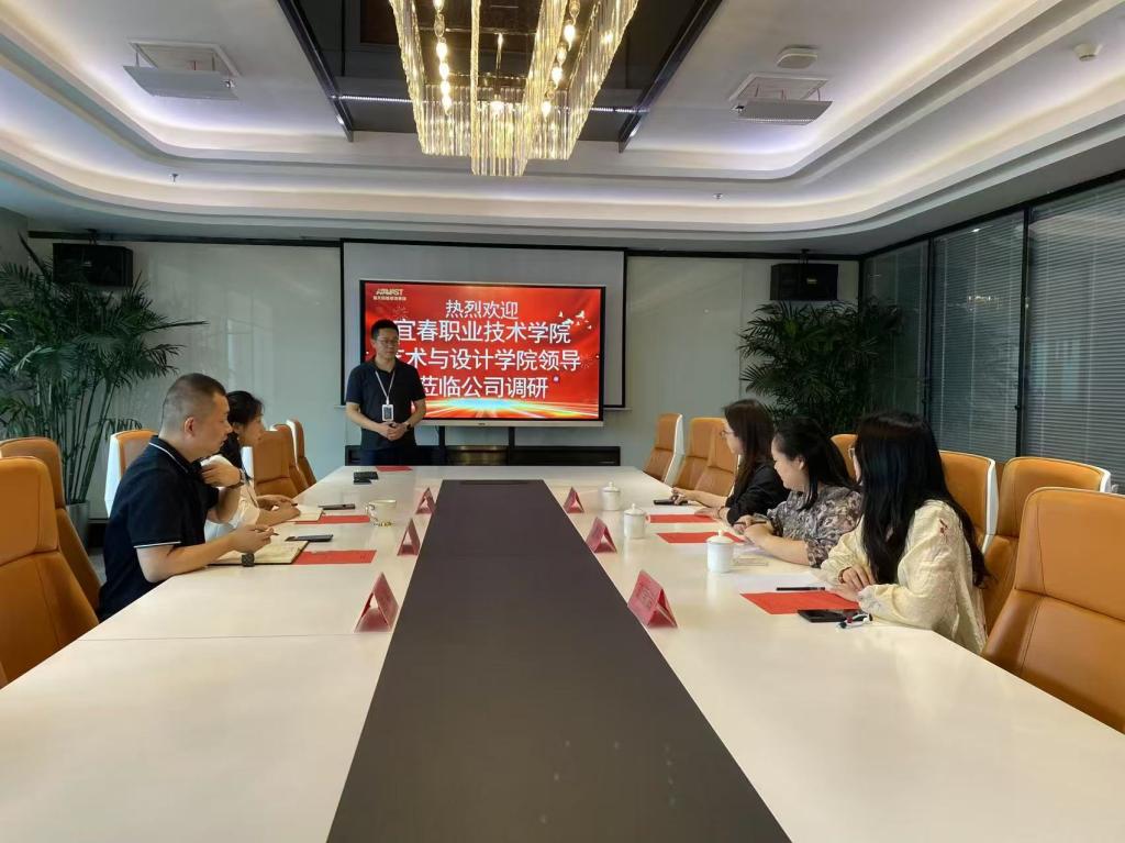4月22日黄卉一行人赴湖北轻工职业技术学院建筑工程与设计学院学习交流。两院院长、教研室主任、专业教师,湖北海天时代科技股份有限公司商务总监刘照朋等人围绕产业学院建设、人才培养和五金建设等核心议题展开深入交流,共同探讨智能家居与适老化家居改造人才培养前景和实施路径。会后,黄卉一行参观该校艺术展厅和专业实训中心。