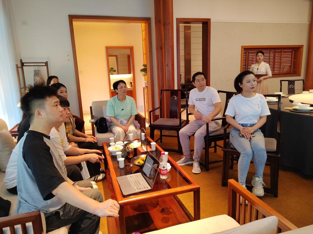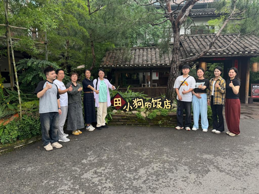 队伍重点走访了长沙田小狗的饭店和晴溪庄园两大标杆企业。在长沙田小狗的饭店,团队深入考察其“山里菜+熟人社交”的差异化定位。作为湖南晴溪餐饮集团旗下品牌,刘江毅与企业负责人就“文化餐饮人才定制化培养”展开交流,提出校企联合开发“乡土餐饮服务标准化”“非遗美食传承”等特色课程以推动学生参与品牌门店运营实践;晴溪庄园作为中式庭院美学餐饮代表,以“黑珍珠餐厅”品质与文旅融合模式吸引团队关注。走访中,校企双方围绕“一河两岸”文旅餐厅项目展开讨论,涵盖宴会策划、数字化营销、非遗文化展示等模块。邓晶提出,可借鉴晴溪庄园与浏阳花炮观礼台合作经验,将烟花主题餐饮服务纳入学生实训项目,助力区域文旅产业升级。2023级学生巫梦玲在体验晴溪庄园的茶艺服务后表示:“从摆台设计到客户互动,每个细节都体现文化底蕴,让我对职业价值有了全新理解。”