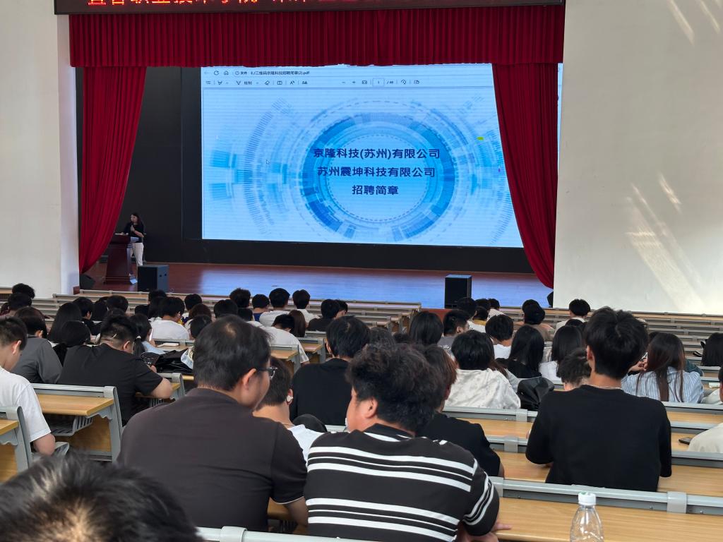本站讯(信息工程学院 袁勋)5月26日,信息工程学院在仁济楼小礼堂举办实习就业专场招聘会。邀请到浙江大华技术股份有限公司、华通电脑(惠州)有限公司、京隆科技(苏州)有限公司等知名企业参与。本次活动旨在为 2025 届实习学生及2026届毕业生开拓更多优质职业机会,同时为用人单位搭建高效的人才选拔平台。