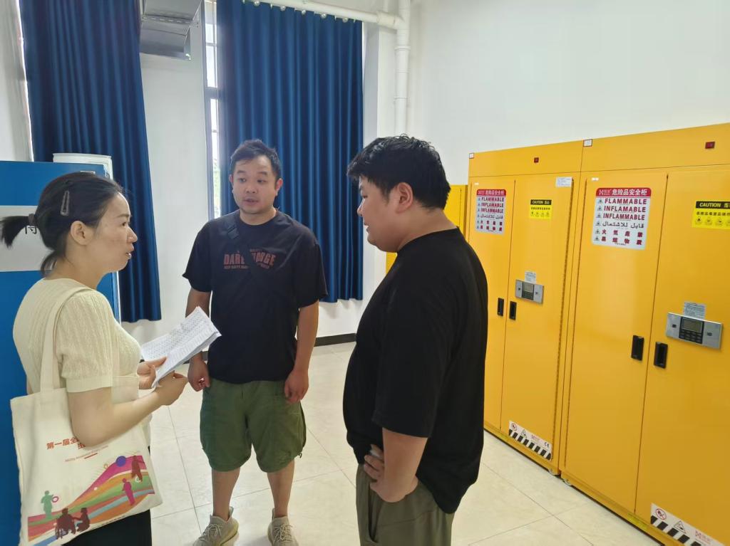 检查组提出假期实验室管理要求:假期不使用的实验室要搞好卫生、断水断电、关闭门窗并贴好封条;假期使用的实验室要提前向教务处、保卫处备案,严格遵守安全规范,熟悉应急流程,做好设备检查与登记;暑假期间有特殊需求、不能断电的实验室,需安排值班人员定期检查并做好记录。