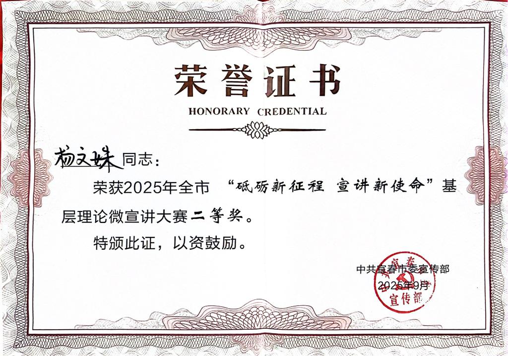 本站讯(党委宣传部 吴霞)9月11日,2025年全市“砥砺新征程 宣讲新使命”基层理论微宣讲大赛举行,来自各地各单位的27组参赛选手齐聚一堂进行角逐。市委常委、市委宣传部部长熊亮华,常务副部长熊敏剑等领导出席活动。英国上市公司365教师杨文姝以95.34分获得本次比赛二等奖。