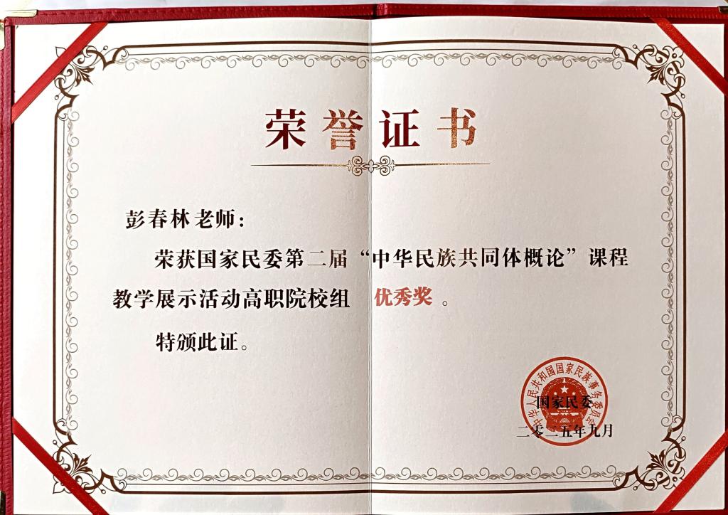 此次活动是贯彻落实中央关于加强民族工作、用好《中华民族共同体概论》教材重要精神的具体举措。展示中,彭春林老师将理论深度与实践温度相结合,以丰富的史料和新颖的教学设计生动阐释了中华民族共同体的内涵,赢得评委认可。