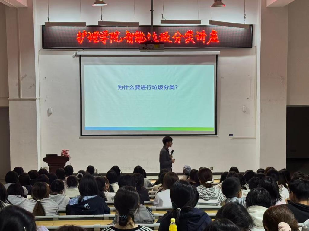本站讯(护理学院 学生记者 王子琳 陈文娟)为普及垃圾分类知识,提升学生的环保意识,11月3日至4日晚,护理学院在和济楼阶梯教室开展“智能垃圾分类”专题讲座。讲座特邀中梵环保科技有限公司垃圾分类讲师赵志鹏主讲,2025级全体新生参加。