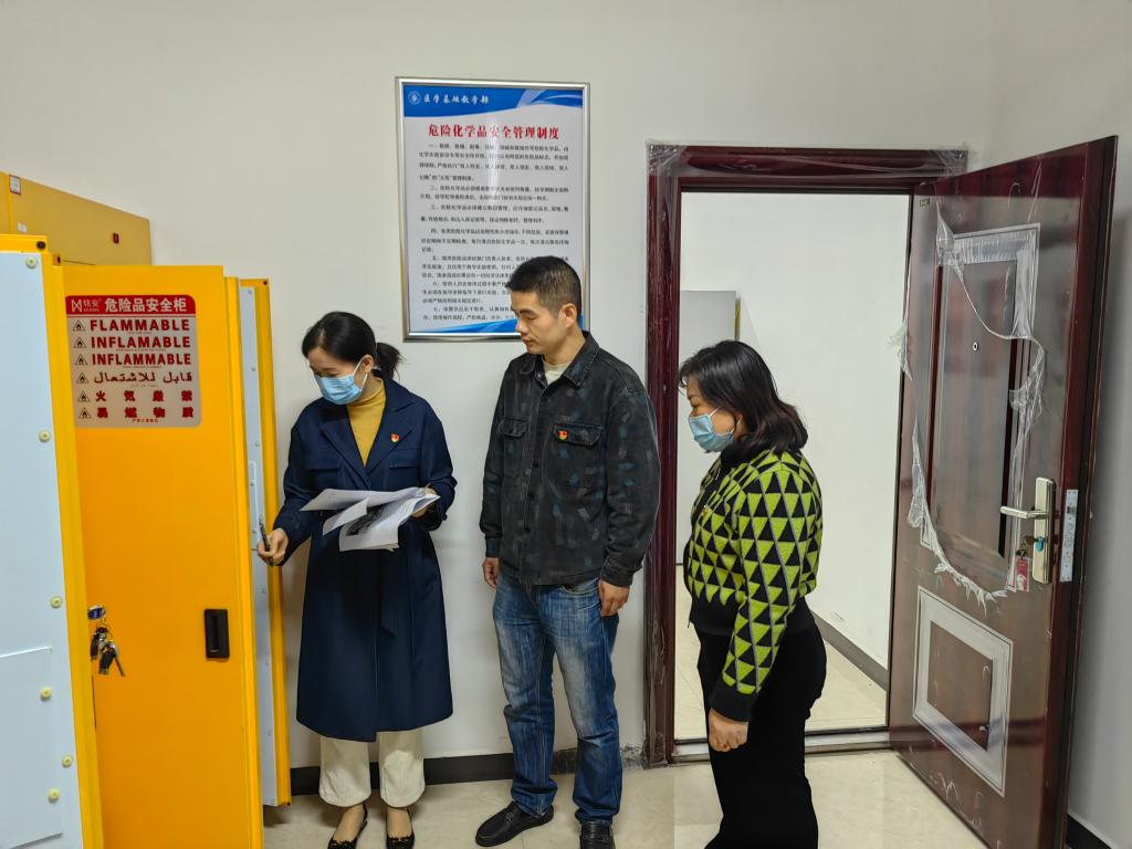 本站讯(机关第五党支部 彭芬)为深入贯彻落实校园安全管理要求,充分发挥基层党组织战斗堡垒作用和党员先锋模范作用,机关第五党支部开展“党旗领航守安全 危化排查护校园”主题党日活动。11月13日下午,由支部部分党员代表、教学院部实验室安全工作负责人以及实验室党员骨干组成的专项检查组,对校内实验室危险化学品情况开展全面检查。