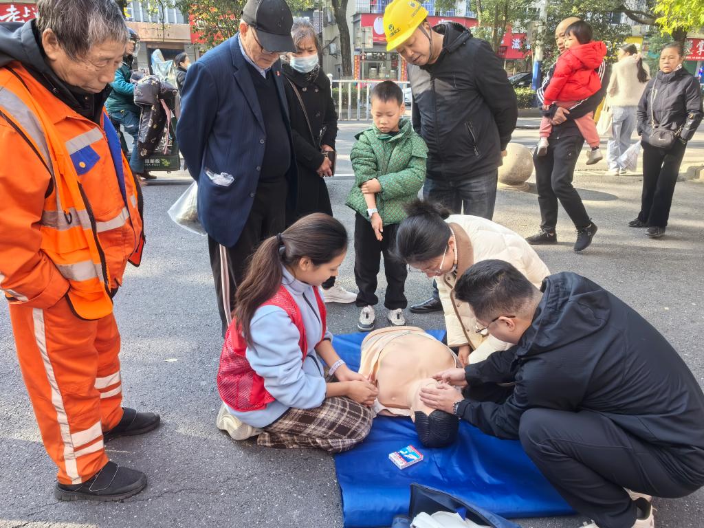 专业且生动的讲解点燃了居民们的学习热情,大家围拢在演示区认真观看,踊跃参与实操环节。带着孙子前来的居民李女士率先上前练习海姆立克法。“平时总担心孩子吃饭噎着,看电视学的方法总怕不标准,今天志愿者手把手教,连发力的角度都讲得明明白白,学会了心里就有底了,真要谢谢这些年轻老师!”在志愿者的指导下掌握动作要领后,李女士感慨道。刚练习完心肺复苏的中年居民张先生擦了擦汗说:“以前只在新闻里见过心肺复苏,今天亲手操作才知道学问这么大,按压的深度、节奏都有讲究。学会这些技能,万一遇到紧急情况,既能救自己也能帮别人,这样的活动太有价值了!”