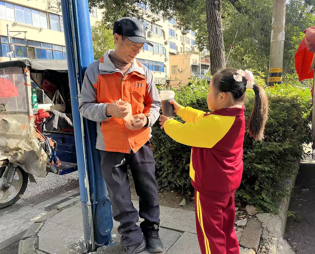“叔叔阿姨,您辛苦了!请喝一杯姜茶暖暖身子!”一声声稚嫩而真诚的问候,回荡在社区的各个角落。这杯饱含敬意的姜茶,被送到了坚守岗位的社区工作者,维护治安的特警同志,时刻待命的消防员、银行职员、外卖小哥以及沿路的保洁人员手中。孩子们不仅送出了温暖,更在实践中学会了用行动表达感谢,亲身体验了劳动与奉献带来的快乐。