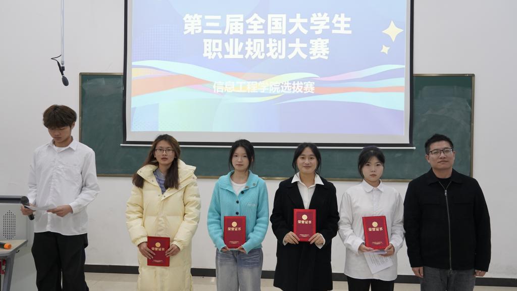 本站讯(信息工程学院 黄彪)为引导学生树立正确职业观念,明确个人发展方向,提升专业综合素质,12月4日晚,信息工程学院在智云楼B102开展第三届大学生职业规划选拔赛。团总支负责老师黄彪、辅导员韩可恬、班主任蔡星担任比赛评委。