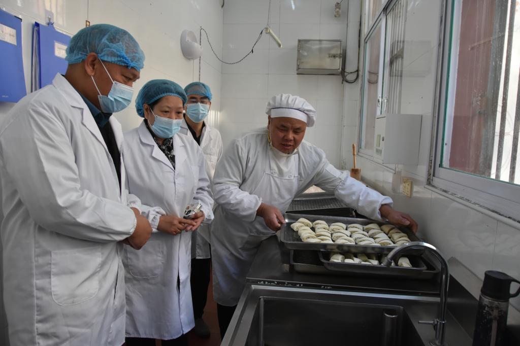 杨卫勇一行深入幼儿园食堂内部,对各功能区域进行了全面细致的检查。杨卫勇先后走进洗菜区、切菜区,仔细查看食材清洗流程是否规范、食材是否新鲜、操作台面及地面环境卫生等情况:在食堂仓库内,认真核对各类食材的生产日期、保质期及储存条件;在操作间,检查烹饪设备及食品加工过程的规范性;在洗碗、消毒区,对消毒设备的运行状态、卫生情况逐一查看。此外,杨卫勇还专门查看了食堂工作人员的健康证明,确认所有从业人员均持有效健康证上岗。