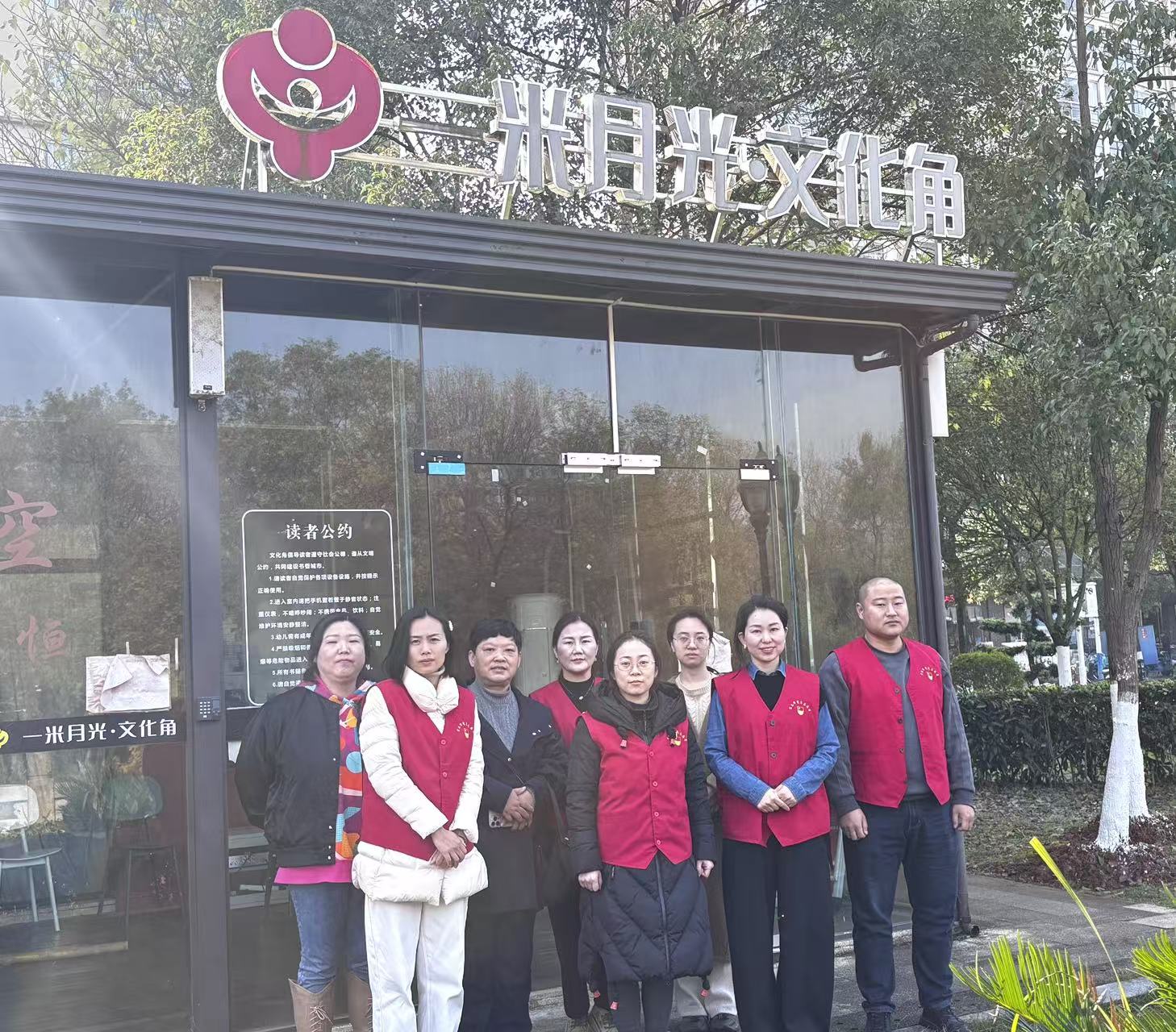 活动伊始,支部党员来到社区“一米月光”爱心书屋,积极投身志愿服务。大家分工协作,仔细整理书架上的各类图书报刊,按类归置摆放,擦拭桌椅与书架,并对书屋内外环境进行全面清扫,为前来阅读、休憩的社区居民营造出整洁、安静、舒适的公益阅读空间。