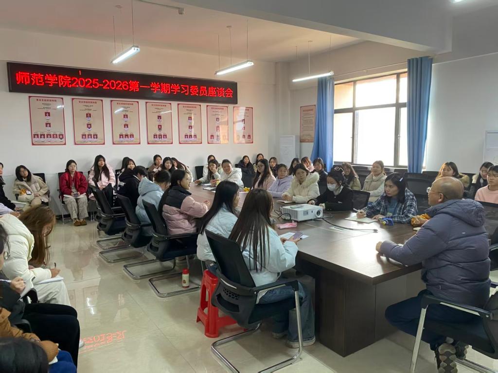 本站讯(师范学院 徐政)12月29日下午,师范学院在正心楼B204会议室举行2025-2026学年第一学期学习委员座谈会。院长肖勇、副院长漆凡、教务科负责人及各班级学习委员参会,座谈会由肖勇主持。