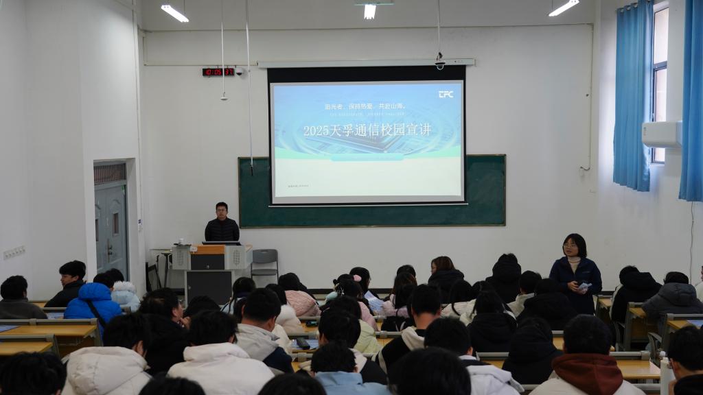 本站讯(信息工程学院 黄彪)为深化产教融合、推进校企协同育人,助力学生明晰职业方向、提升实践能力,1月11日,信息工程学院在智云楼B102开展江西天孚通讯现场工程师遴选宣讲,江西天孚科技有限公司副总经理胡昌平一行、学院领导班子及25级网络技术专业全体学生参加。