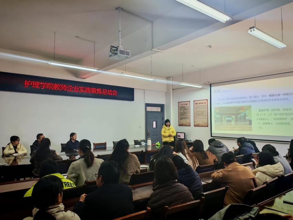 本站讯(护理学院 宋锦河)为紧扣行业发展需求,破解教学与一线实践衔接壁垒,1月13日下午,护理学院举办2025年教师实践锻炼总结汇报会。学院领导班子、全体专业教师参会,完成企业实践的十余位教师依次分享实践成果。