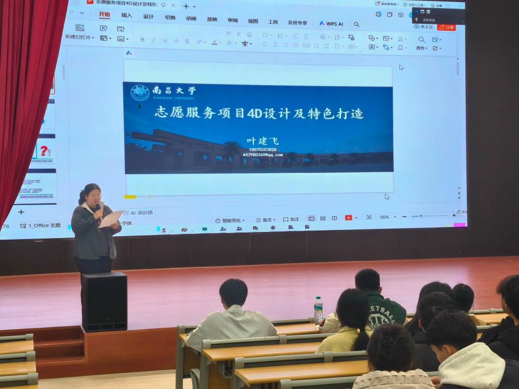 本次活动由校团委书记王玮主持,特邀南昌市青年志愿者协会副秘书长、志愿服务领域资深专家叶建飞担任主讲。校院两级青年志愿者协会师生代表及备战省志愿服务项目大赛的团队成员到场聆听。
