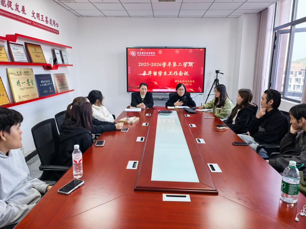 会上,校方全面了解留学生上学期学习生活状况,相关负责人围绕学业进展、日常适应、校园融入等方面与学生沟通交流,及时掌握其需求与困难,并聚焦春季传染病预防、清明假期安全等关键事项,提醒留学生增强安全防范意识,遵守校园管理规定。同时,会议对留学生汉语大赛、“中文+职业技能”竞赛展开动员筹备,并就来华留学生专升本政策进行宣讲和答疑,鼓励同学们积极参赛、精进学业、拓宽发展路径。往届国际竞赛获奖留学生现场分享备赛经验与参赛心得,为同学们提供实用参考。针对蒙古国留学生汉语学习需求,会议明确新学期汉语学习计划,将按月开展汉语水平测试,以测促学、以评促练,持续提升留学生汉语应用能力。此外,会议对2026届毕业留学生相关工作进行安排,确保毕业工作规范有序推进。