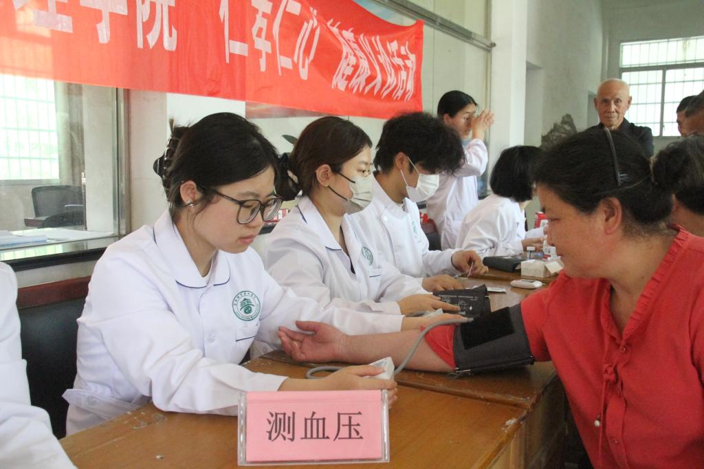 刘叶建与王军明共同为基层党组织联建共建基地暨志愿服务站揭牌。现场响起热烈掌声,标志着双方校地党建联建工作正式启动。揭牌仪式结束后,“精一护航·出彩天使”党员健康服务先锋队立即开展义诊活动,为到场的村民代表及周边群众提供血压测量、血糖检测、健康咨询、护理指导等服务,用专业技能践行志愿服务宗旨,切实将健康关怀送到群众身边。